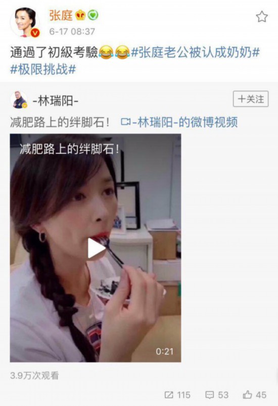 張庭被老公戲稱(chēng)“減肥路上絆腳石”