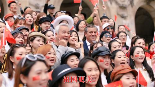 視頻中可以看到上百人揮舞手中的國旗表白祖國,張庭林瑞陽(yáng)帶領(lǐng)大家一起大喊:“祖國生日快樂(lè ),我們美,祖國更美”。張庭站在中間,在一片紅色的映襯下顯得格外美麗,完全看不出真實(shí)年齡。隔著(zhù)屏幕都能感覺(jué)滿(mǎn)滿(mǎn)的愛(ài)國心和身為中國人的自豪感。
