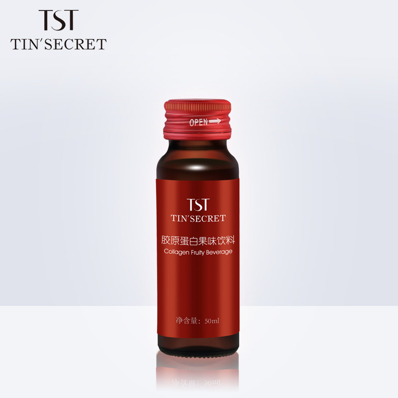 TST膠原蛋白果味飲里面包含了膠原蛋白肽粉,再加上精選臺灣60種蔬果酵素,含多重維生素C和膳食纖維,每日一瓶,美麗好心情。